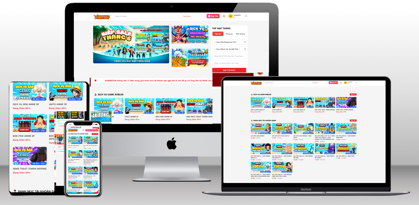 Tạo Shop Bán Acc Game Tự Động | Roblox, Liên Quân, Free Fire, PUBG