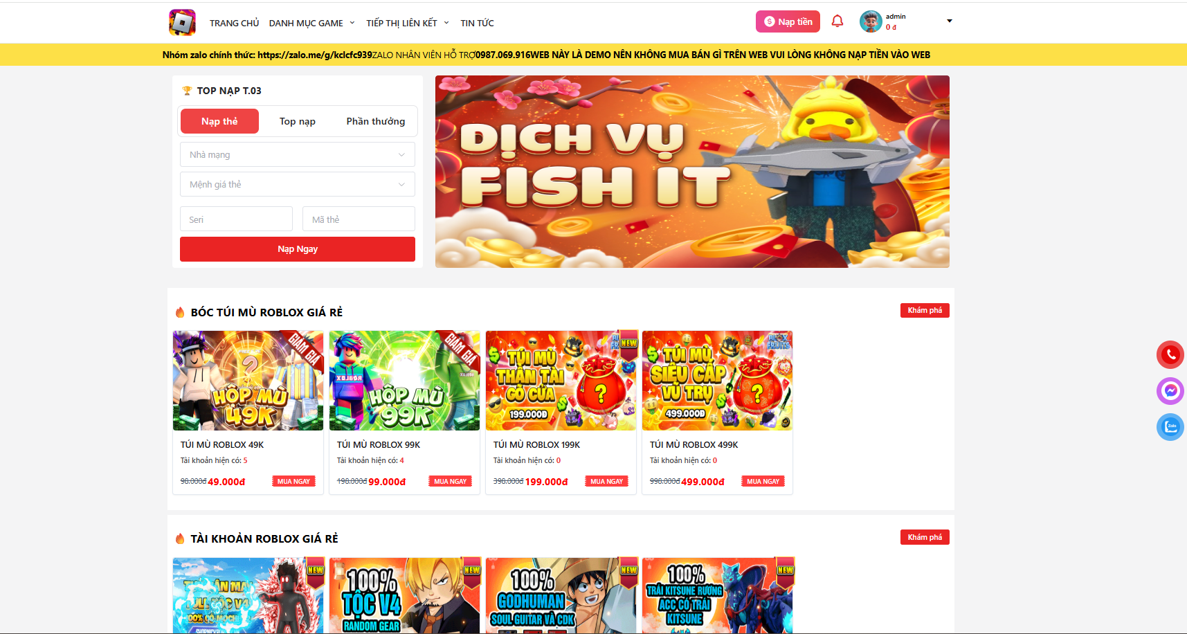 › Tạo Shop Acc Game Tự Động: Hướng Dẫn Mở Shop Roblox, Liên Quân, Free Fire, PUBG & Đa Game